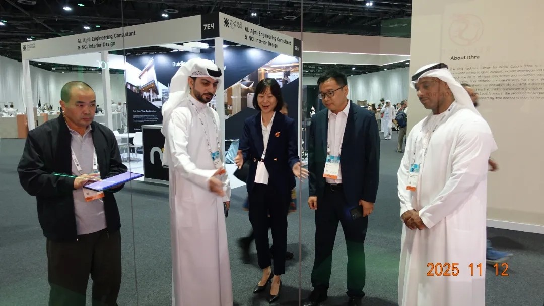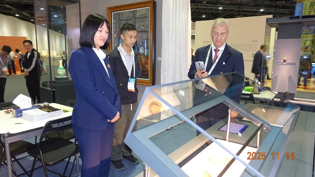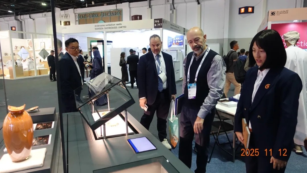 三項展柜創(chuàng)新核心技術,融合美學、功能、實操,以鮮活“未來感”呼應大會主題,開啟文博展陳新天地,吸引了世界客商、各國專家。中國駐迪拜總領事歐渤芊女士也蒞臨克里克展位,與克里克一行熱情交談。